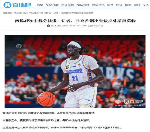 篮球资讯:两场4投0中得分挂蛋!记者:北京首钢决定裁掉外援奥莫特