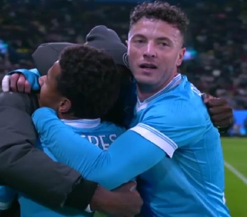 比赛开始后,双方场面胶着,谁都没能压制对手。关键时刻,霍伊伦德的爆发,打破了场上平衡。第39分钟,霍伊伦德在禁区内接球,随后用身体顶住AC米兰后卫,转身送出横传,门前的门将和后卫都没能解围,最终内维斯包抄,轻松推射空门,那不勒斯1-0领先。